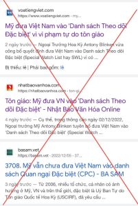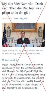 Sẽ không có gì đáng nói nếu như đây chỉ là vụ án xét xử và được thi hành theo đúng quy định của pháp luật bình thường. Nhưng cụ thể, trong thông cáo ngày 02/12/2022 vừa qua theo thông cáo của Ngoại trưởng Mỹ Antony Blinken, Bộ Ngoại giao Mỹ vừa quyết định đưa Việt Nam vào cái gọi là “Danh sách theo dõi đặc biệt”. Và sau đó đã được được các trang báo “phi pháp” chuyên định hướng dư luận những thông tin sai trái đưa tin như; BBC, VOA Tiếng Việt, Ba Xàm, Nhật báo văn hóa Online,… phủ sóng khắp các trang web thông tin.