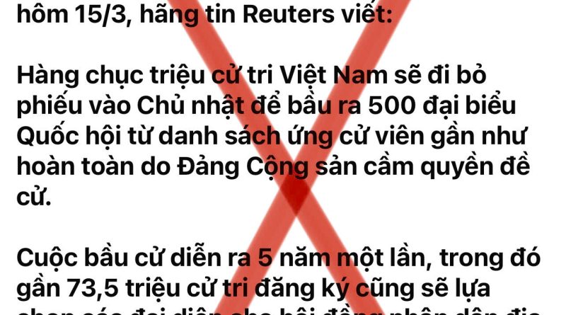 Đọc thêmViệc BBC News Tiếng Việt “dẫn lời” hãng tin Reuters cho rằng cuộc bầu cử Quốc hội khóa XVI tại