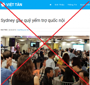 Việt tân (Kẻ đứng ra tổ chức buổi tiệc là cơ sở Việt Tân tại New South Wales): Có tên đầy đủ là “Việt nam canh tân cách mạng đảng” trụ sở chính tại: 2530 Berryessa Rd#234 San Jose CA 95132 – 2903, Mỹ; văn phòng 2 tại Băng Cốc – Thái Lan; đối tượng cầm đầu, chỉ huy là Đỗ Hoàng Điềm, sinh năm 1963, Quốc tịch Mỹ là chủ tịch Việt tân, Lý Thái Hùng, sinh năm 1953, quốc tịch Mỹ, Tổng bí thư Việt tân tổ chức này chính thức được cổng thông tin điện tử Bộ Công an Việt Nam thông báo là tổ chức “Khủng bố”.
