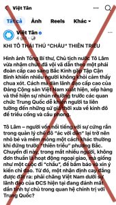 Thời gian qua, ngay sau chuyến thăm cấp Nhà nước tới Trung Quốc của Tổng Bí thư, Chủ tịch nước Tô Lâm, trên các trang mạng xã hội của các tổ chức phản động như “Việt Tân” lại rộ lên những bài viết với luận điệu cũ rích, xuyên tạc bản chất quan hệ Việt – Trung. Họ sử dụng những từ ngữ mang tính kích động như “chầu”, “thái thú” hay “hèn với giặc” để bôi nhọ lãnh đạo cấp cao và hạ thấp vị thế đất nước. Đây thực chất là những mưu đồ chính trị đê hèn nhằm chia rẽ khối đại đoàn kết dân tộc và phá hoại môi trường hòa bình, ổn định của nước ta.