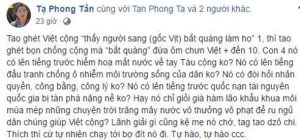 Trong một diễn biến khác thì mới đây, Tạ Phong Tần cũng đã đăng tải bài viết “chửi xéo” Quỳnh như sau: “…Nó chỉ giỏi già hàm lão khẩu khua môi múa mép những chuyện trời trăng mây nước vô thưởng vô phạt để ru ngủ dân giúp Việt cộng? Lãnh giải gì kệ mẹ nó chứ tag t vô chi. Thích thì cứ tự nhiên chạy tới bợ đít nó đi. Tự hào, tự hào ccc.”