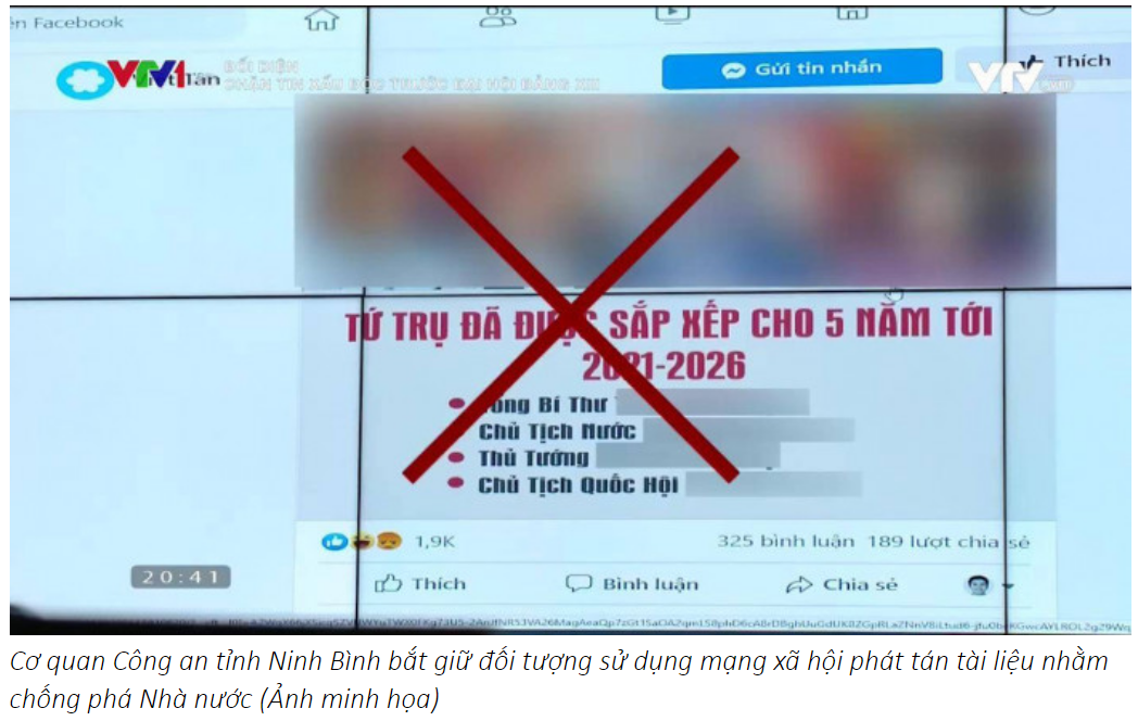 Ngày 10/3, Công an tỉnh Ninh Bình cho biết, vừa tiến hành bắt giữ đối tượng để điều tra, làm rõ hành vi phát tán tài liệu chống phá Nhà nước.