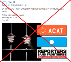 Ảnh chụp màn hình facebook Việt Tân (nguồn: internet)