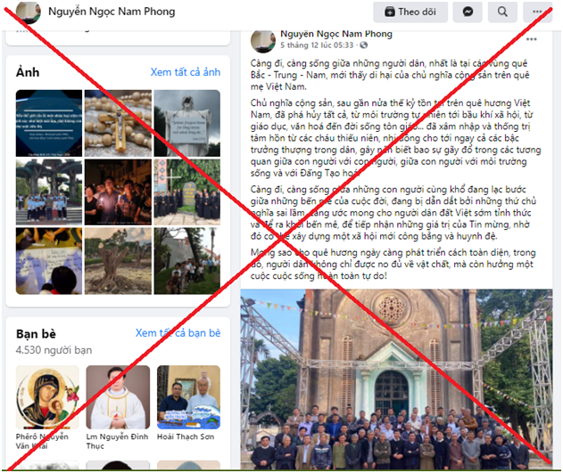 Trong ngày 05/12/2020, trên trang facebook “Nguyễn Ngọc Nam Phong” đã đăng tải bài viết thể hiện rõ tư tưởng phản động, nói xấu chế độ đã hủy hoại môi trường, văn hóa, giáo dục đến đời sống tôn giáo,…cùng với đó thể hiện luôn cả quan điểm kêu gọi lật đổ chế độ hiện tại. Có thể thấy rằng, những việc lồng ghép, tuyên truyền, xuyên tạc, bôi xấu chế độ, nói xấu Đảng và Nhà nước vào trong những bài giảng của Nguyễn Ngọc Nam Phong là điều không có gì đáng lạ lẫm. Linh mục này thường xuyên sử dụng những vấn đề phức tạp trong xã hội, tìm ra những sơ hở, thiếu sót trong công tác quản lý của Nhà nước để quy chụp, bịa đặt đổ lỗi cho chính quyền. Bên cạnh đó, reo rắc, tiêm nhiễm trong tư tửng mỗi người dân những ác cảm, sự chống đối với Đảng, Nhà nước.