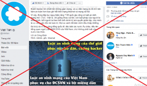Luật An ninh mạng đã chính thức có hiệu lực từ ngày 01/01/2019. Luật bao gồm 7 chương, 43 điều. Quá trình xây dựng văn bản luật này rất chi tiết, cụ thể, chặt chẽ và logic, luôn đảm bảo tính khách quan, công bằng. Bộ Luật này đã được tham khảo ý kiến của rất nhiều tầng lớp trong xã hội, được xem xét, tổng hợp ý kiến và thông qua dự thảo tại Quốc hội. Chính vì vậy, không thể nói Luật An ninh mạng là “bịt miệng dân” như hình ảnh bịa đặt của trang facebook việt tân được.