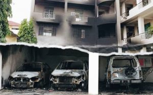 Ảnh: Do người dân kích động đập phá, đốt cháy ô tô ở trụ sở cơ quan tỉnh Bình Thuận