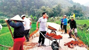 Cán bộ huyện Yên Bình (tỉnh Yên Bái) tham gia tu sửa đường giao thông nông thôn trong hoạt động “Ngày cuối tuần cùng dân” tại thôn Nà Ké, xã Ngọc Chấn. (Ảnh: Thanh Sơn)