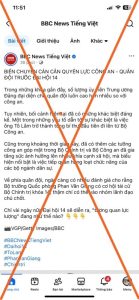 Gần đây, trên trang Facebook “BBC News Tiếng Việt” xuất hiện bài viết với tiêu đề “BIẾN CHUYỂN CÁN CÂN QUYỀN LỰC CÔNG AN – QUÂN ĐỘI TRƯỚC ĐẠI HỘI 14”, chứa đựng nhiều luận điệu sai trái, bịa đặt, xuyên tạc liên quan đến lực lượng Công an, Quân đội và công tác nhân sự Đại hội Đại biểu toàn quốc lần thứ XVI của Đảng Cộng Sản Việt Nam.