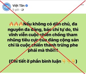 Ấy thế mà, tổ chức phản động việt tân lại có những suy nghĩ nông cạn về vấn đề này. Trên trang facebook của chúng đăng bài cho rằng “người dân ngày càng chán nản cuộc chiến chống tham nhũng vì càng chống tham nhũng, tham nhũng càng nhiều”; hay “nếu không có dân chủ, đa nguyên đa đảng, báo chí tự do, thì vĩnh viễn cuộc chiến chống tham nhũng, tiêu cực của đảng cộng sản chỉ là cuộc chiến thanh trừng phe phái”.