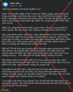 Thời gian gần đây, trên trang Fanpage tổ chức khủng bố Việt Tân đã đăng tải bài viết có tiêu đề “ĐÃ CÓ ĐẢNG VÀ NHÀ NƯỚC LO”, với nội dung bịa đặt, công kích, xuyên tạc vài trò lãnh đạo của Đảng và Nhà nước.