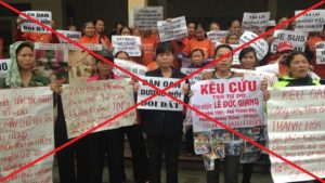 Hình ảnh đối tượng Cấn Thị Thêu (đứng giữa, mặc áo đen) kích động người dân tụ tập đông người biểu tình tại Hà Nội