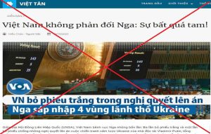 Thực tế ngày 14/11/2022 Đại hội đồng Liên Hợp quốc đã có phiên họp thông qua Nghị quyết để yêu cầu Nga bồi thường “chiến tranh” cho Ukraine, kết quả bỏ phiếu có 94 phiếu thuận, 14 phiếu chống và 73 phiếu trắng cho Nghị quyết này, trong đó tất nhiên Việt Nam bỏ phiếu trắng. Trong lần bỏ phiếu thứ 4 này thì số nước phản đối dự thảo Nghị quyết yêu cầu Nga bồi thường “chiến tranh” cho Ukraine đã tăng lên đáng kể, đồng thời số phiếu trắng (tức số nước đã không phụ thuộc vào đám đông do Mỹ và phương Tây đứng sau hối thúc tăng đáng kể so với ban đầu) cũng đã tăng lên gấp đôi. Luận điệu tuyên truyền, công kích của Việt Tân và các đài báo phương Tây không hề thay đổi sau mỗi lần LHQ đưa ra bỏ phiếu đối với các vấn đề liên quan đến chiến sự tại Ukraine, vì nó mang đặc trưng chung là luôn phê phán chúng ta khi ta “không chọn bên” hay không chọn phương Tây như mong muốn của chúng mà chúng ta kiên định quan điểm giải quyết mọi xung đột dựa trên luật pháp quốc tế và tính đến lợi ích của các bên liên quan.